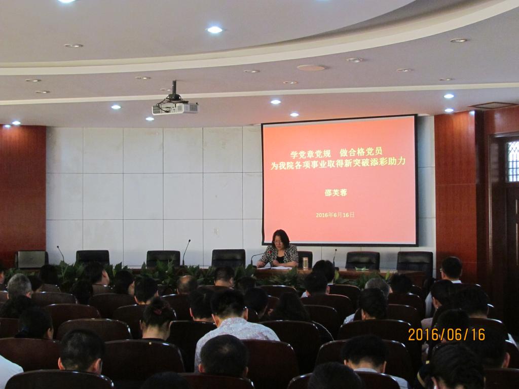 邵芙蓉主席从“为什么学、重点学什么、怎么做”三个方面,深刻阐释了“学党章党规”的重要作用,“学党章党规”的重点与方向,并结合我院实际,提出了有关工作要求。