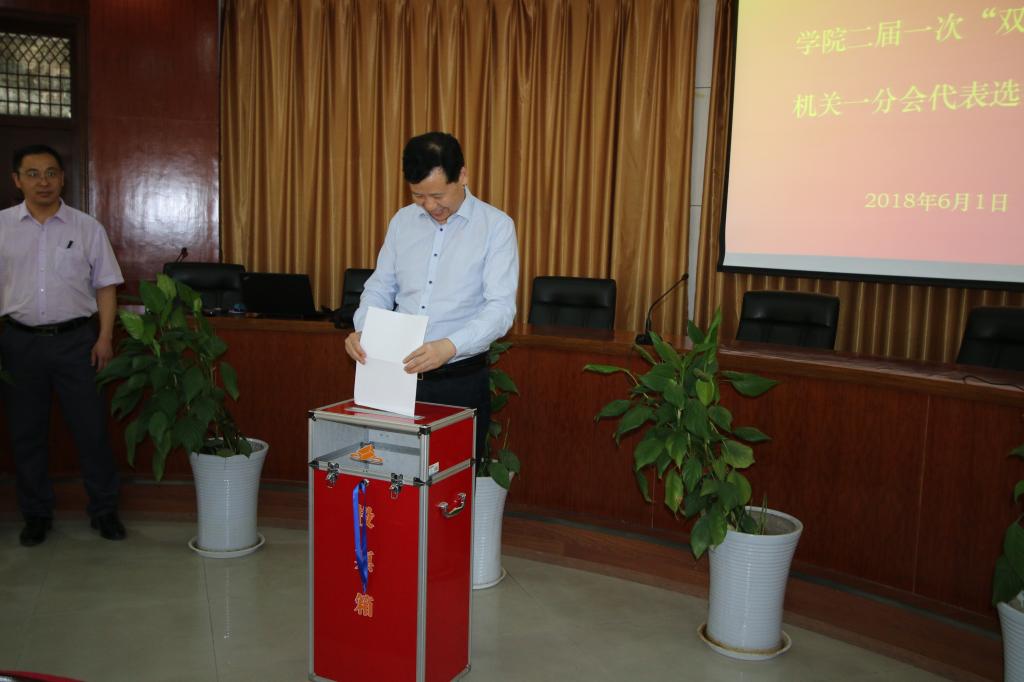 6月1日下午,校工会机关一分会在行政楼二楼圆形会议室召开了校二届一次“双代会”代表选举大会,党委书记李四清以普通会员的身份参加了机关一分会校二届一次“双代会”代表的选举工作,机关一分会所属的八个部门46名会员参与了代表选举。