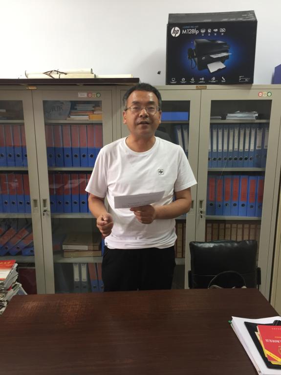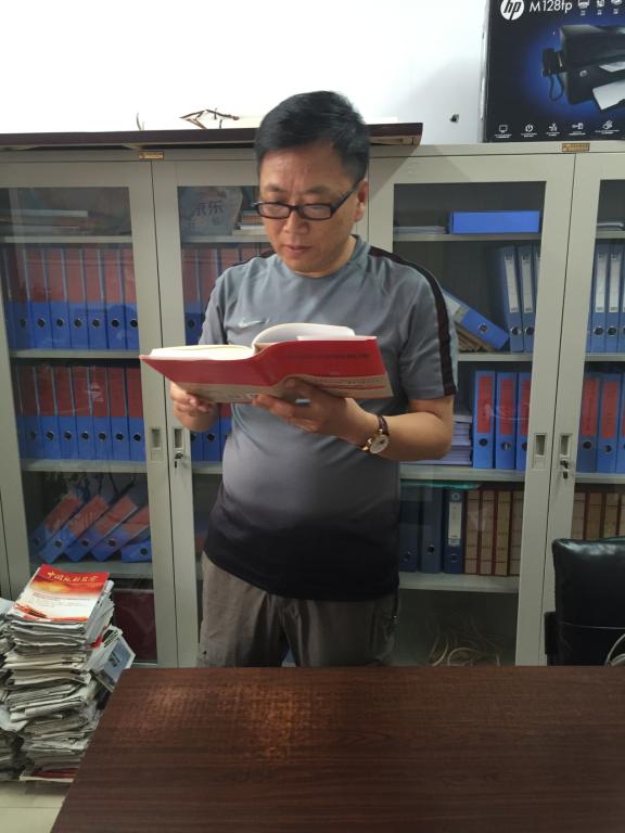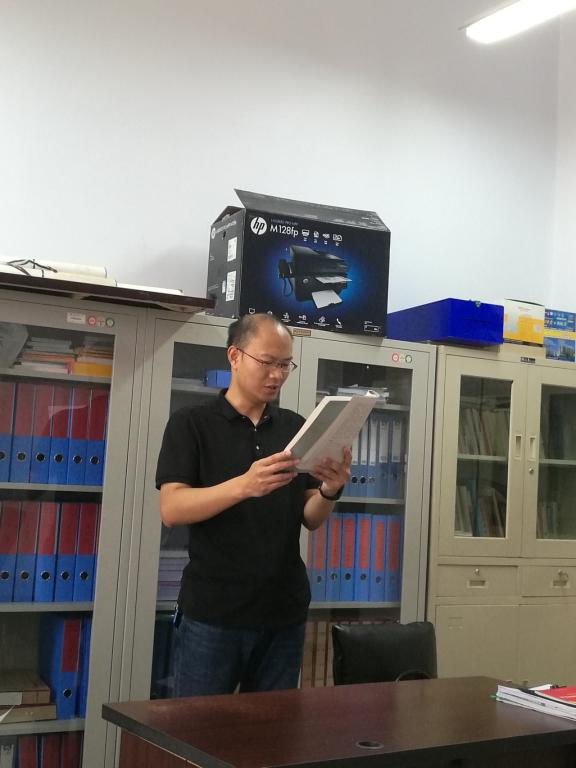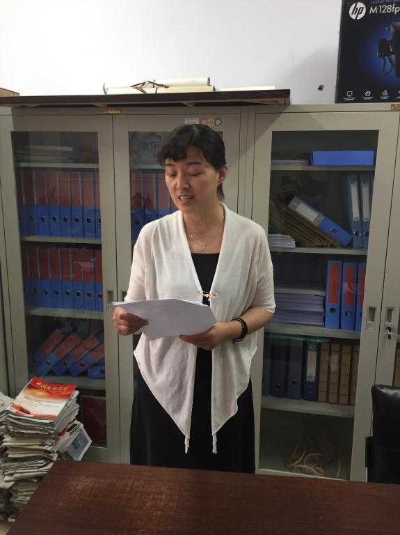 6月20日,纪检监察室党支部在行政楼231室举办“朗读沙龙”活动。图为纪委副书记、监察室主任杨华同志朗读老舍先生的《宗月大师》。