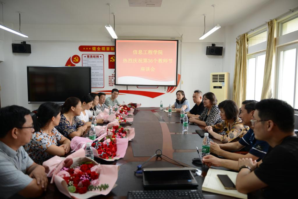 9月10日上午,邵芙蓉副院长在纪委副书记兼纪检监察室主任杨华、张立新两位同志的陪同下,走访信息工程学院,慰问该学院教师代表。在综合楼508室,邵院长代表校党委,向辛勤工作在一线的教师代表,献上鲜花、送出祝福,并致以诚挚的节日问候和良好祝愿。