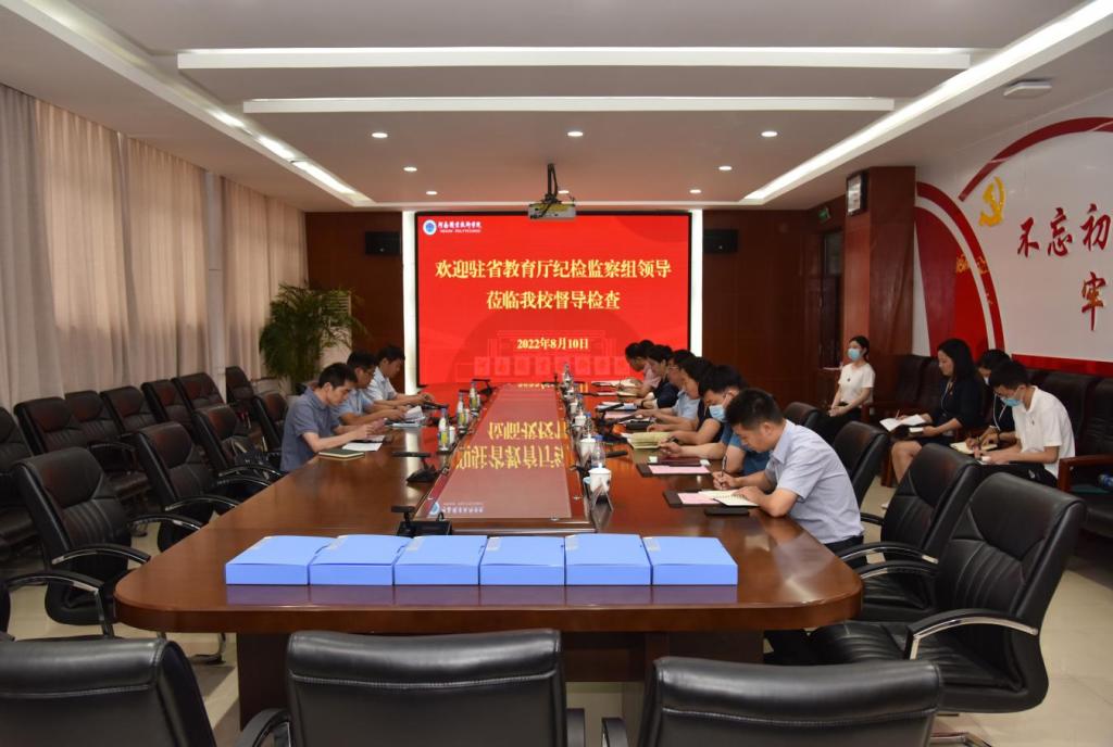 8月10日,驻省教育厅纪检监察组综合室主任张前锋同志带队到我校就校党委2022年上半年落实全面从严治党主体责任情况开展督导检查。学校党委副书记、校长梅乐堂和党委副书记、纪委书记田华及相关部门负责人参加汇报会。