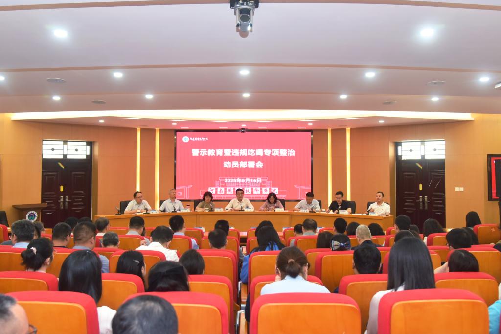 厉励强调,整治违规吃喝绝非一时之功,全校党员干部要深刻认识违规吃喝问题的政治危害性、作风腐蚀性和社会破坏性,切实提高政治站位,把思想和行动统一到省委专项整治工作部署上来。全校上下要以此次会议为契机,以“铁规矩”意识锻造过硬作风,以“零容忍”态度纠治顽瘴痼疾,以“钉钉子”精神刹住歪风邪气,坚决打赢作风建设攻坚战,让清正廉洁的新风正气充盈校园,为学校高质量发展提供坚强保障。